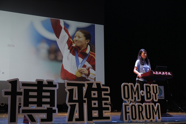 随后,她分享了第二个小故事。在2002年的盐湖城冬奥会,她在短道速滑500米的赛道上为中国冬奥军团斩获首金,在这荣耀的背后,其实也充满坎坷。在前两天进行的1500米的项目是杨扬的优势项目,四年内未逢敌手,状态爆棚的她被认为是夺冠的最大热门,然而在心态失衡的作用下,杨扬输了,甚至没有获得奖牌。走下赛场的她信心全无,觉得一切都完了,后面的比赛也完了。面对团队的激励、队友的信任,杨扬迅速调整心态,放下包袱,获得了成功。她鼓励同学们:“人们输掉他们的梦想,不是因为缺少天赋,而是缺少面对失利的勇气,以及对责任的担当”。
