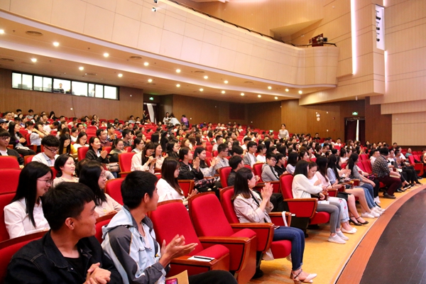 在她身上,那些沉甸甸的荣誉和辉煌,在清清浅浅的时光里不过是一个一个路向标,每个路向标都指向下一次的全力以赴。她用个人演讲的春风化雨和问答互动的温情展示,演绎着新时代中国青年的奋斗英姿与拼搏风采。为时一个半小时的讲座温馨、流畅,不时引来同学们的阵阵掌声,气氛热烈。