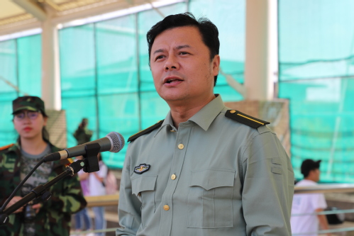 入营式上,刘刚代表学校党政领导向全体军训教官、教职员工及参训同学表达感谢和问候,对我校历年来军训的成效给予肯定,并就相关军训内容进行部署。讲话中,刘刚强调了军训的重要意义,希望能够借军训的良好契机使同学们养成集体意识、团结精神,在磨练中塑造更奋进、更优秀、更坚强的自我。同时,他结合当前国际形势和中国国情,希望同学们能够感谢军人、尊崇军人,体会到“世间并无岁月静好,而是一直有人在为我们负重前行”。他要求同学们进一步增强国防意识,明白“天下虽安,忘战必危”的道理,将维护国家安全的使命牢记心间。最后,他对参训学生提出四点要求,一是提高认识、端正态度,铆足一股劲;二是服从指挥、严守纪律,拧成一股绳;三是珍惜荣誉、争创佳绩,团结一条心;四是确保安全、听从管理,共圆一个梦,在军训期间体现“文明精神、野蛮体魄”,以更好的状态迈向自己的诗和远方。