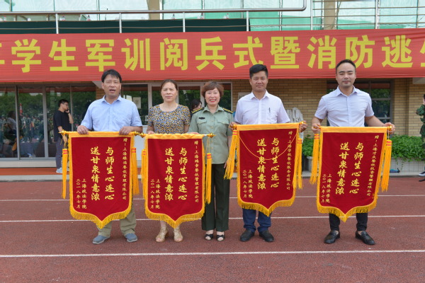 7月3日,我校2018年学生军训阅兵式暨消防疏散步兵排平原进攻战斗演习在学校操场举行。校党委书记夏小和,校党委副书记、校长刘晓红,校党委副书记、纪委书记潘牧天,校党委副书记、副校长刘刚,副校长关保英,副校长胡继灵,副校长姚建龙,上海市警备区战备建设局参谋贾启明,武警上海总队九支队三大队教导员吴凡,以及职能部门和二级学院负责人出席活动。