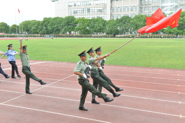 7月3日,我校2018年学生军训阅兵式暨消防疏散步兵排平原进攻战斗演习在学校操场举行。校党委书记夏小和,校党委副书记、校长刘晓红,校党委副书记、纪委书记潘牧天,校党委副书记、副校长刘刚,副校长关保英,副校长胡继灵,副校长姚建龙,上海市警备区战备建设局参谋贾启明,武警上海总队九支队三大队教导员吴凡,以及职能部门和二级学院负责人出席活动。