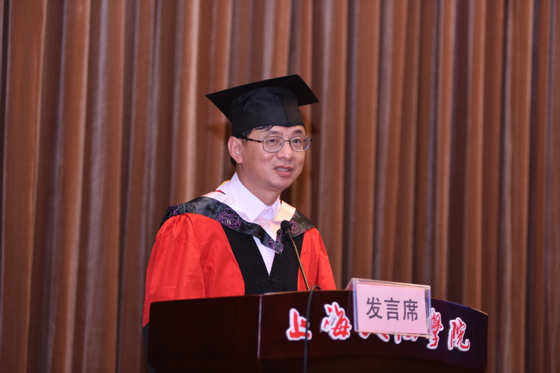 吴强回顾了几代上政人筚路蓝缕,励精图治的历史,分享了学校发展中频传的捷报。他寄语全体毕业生:一是在知识更新一日千里的时代,要始终保持学习的兴趣,努力使学习成为终身的习惯,要把今天的毕业典礼,当作对前一阶段学习成果的总结,更要视为未来新的学习阶段的开始。二是希望从上政走出的毕业生们能秉承学校“刻苦求实,开拓创新”的校训,在今后的生活、工作中,始终坚持脚踏实地的工作作风,不忘初心,追求卓越,实现梦想。三是希望毕业生们始终牢记自己永远是上政人,不论走到哪里,也不论离开多久,上政美丽的校园永远都是同学们勇敢前行的坚强后盾。