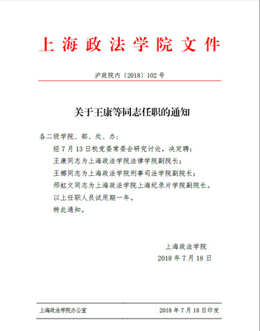 关于王康等同志任职的通知