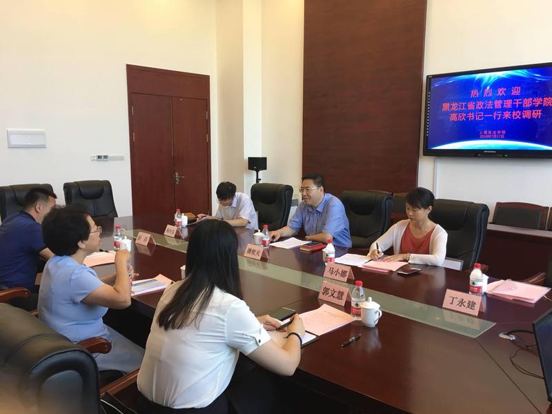 潘牧天对高欣一行到我校调研交流表示热烈欢迎,并介绍了学校的发展历史以及人才培养、师资队伍建设、科研工作、国际化办学、上合组织培训基地建设等方面情况。潘牧天表示,上海政法学院自成立以来始终坚持开放办学,在上级部门领导和有关各方面支持下,经过学校历任领导班子和全体师生员工的不懈努力,取得了今天的成绩。站在新时代的历史起点上,学校愿同包括黑龙江省政法管理干部学院在内的兄弟院校以及有关各方密切合作,加强协同,共同为教育事业发展和法治中国建设做出新的更大的贡献。