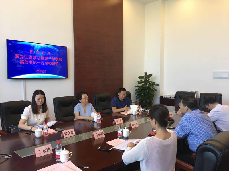 潘牧天对高欣一行到我校调研交流表示热烈欢迎,并介绍了学校的发展历史以及人才培养、师资队伍建设、科研工作、国际化办学、上合组织培训基地建设等方面情况。潘牧天表示,上海政法学院自成立以来始终坚持开放办学,在上级部门领导和有关各方面支持下,经过学校历任领导班子和全体师生员工的不懈努力,取得了今天的成绩。站在新时代的历史起点上,学校愿同包括黑龙江省政法管理干部学院在内的兄弟院校以及有关各方密切合作,加强协同,共同为教育事业发展和法治中国建设做出新的更大的贡献。