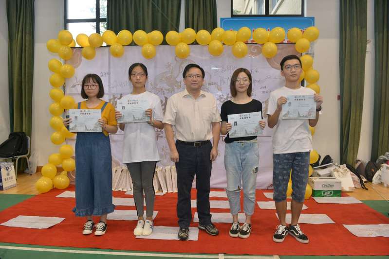 刑事司法学院设立司意展架,摆放具有刑事司法学院特色的禁毒与特训队历年所获的部分荣誉奖杯与证书,直观向新生展现我院的特色项目成果,提高特色项目吸引力,增强新生们的归属感和自豪感。警务学院结合自身特色,展示警务装备,宣扬警务精神。我院特将学院特色盾牌与模拟枪械放至迎新现场展示柜中,以实物带以新生直观的军心警魂体验。文学与传媒学院、上海纪录片学院迎新中开展“写给未来的自己”明信片慢递活动,学生在印有上政特色风景的明信片背面写下自己对大学的设想与展望,选择慢递的时间,填写完毕后交由学院保管,待慢递时间到后返还给学生,供其鞭策新生能牢记初心,逐梦前行。