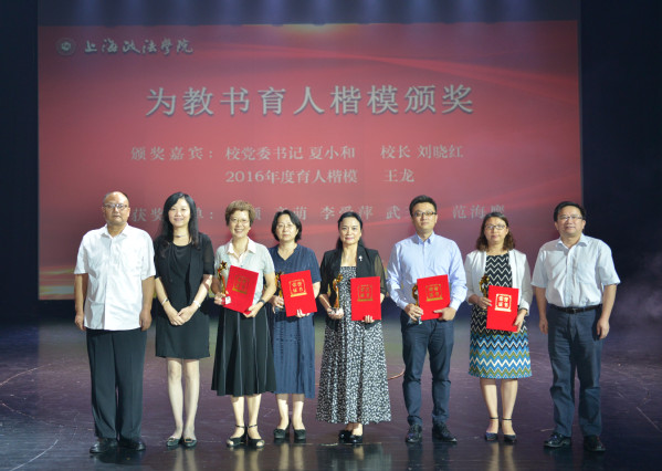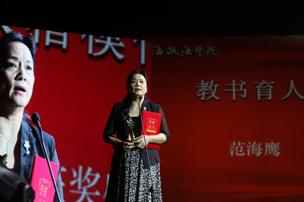 2016年度育人楷模王龙宣读2018年度教书育人楷模颁奖词,获奖的是警务学院武玉红、社会管理学院李爱萍、刑事司法学院范海鹰、国际法学院齐萌、经济管理学院孙颖。校党委书记夏小和、校长刘晓红共同为获奖人颁奖。范海鹰致获奖感言,她动情地回顾了在上政的点点滴滴,感怀十年的工作,感恩身边的人,感悟生命的意义,愿继续筑梦上政,潜心育人。