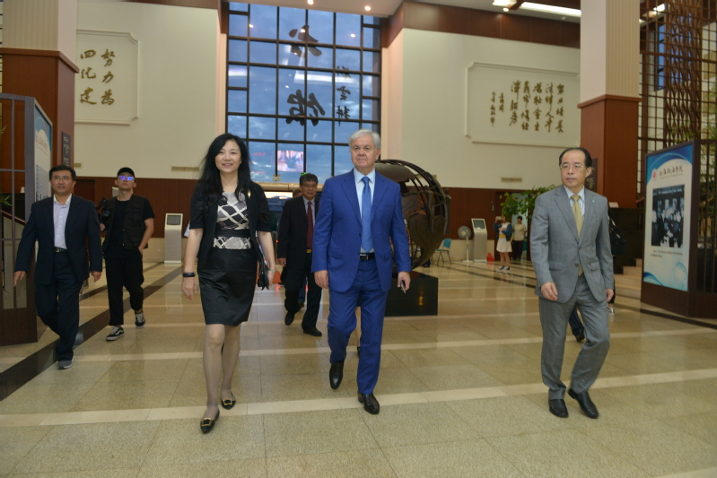 9月17日下午,上海合作组织秘书长阿里莫夫、前副秘书长王开文一行莅临上海政法学院考察中国-上海合作组织国际司法交流合作培训基地。上海政法学院党委书记夏小和、校长刘晓红、副校长关保英、副校长胡继灵、副校长姚建龙热烈欢迎秘书长的到来,并陪同参观校园、座谈交流。