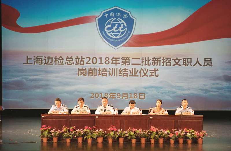 9月18日上午,上海出入境边防检查总站2018年第二批新招文职人员岗前培训班结业仪式在我校学生礼堂隆重举行。上海边检总站党委书记、总站长徐乃刚,政治处主任师福强,总站培训中心主任吴仁祥,外高桥边检总站三队教导员杨尚锋,我校党委副书记、副校长刘刚,继续教育学院(培训部)院长马小娜出席了结业仪式。参加本次岗前培训班的95名文员顺利通过结业考核并参加了结业仪式,仪式由师福强主持。