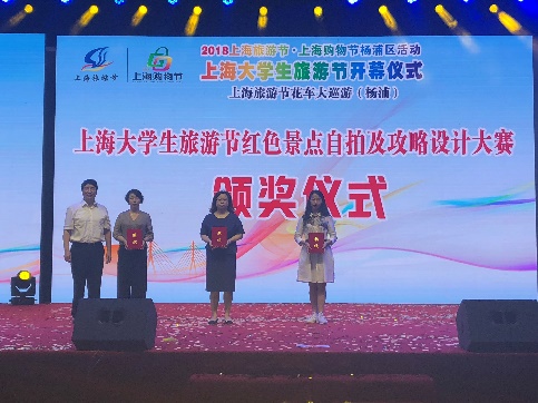 由上海市旅游局、杨浦区人民政府主办的2018上海大学生旅游节红色自拍及攻略设计大赛于9月21日晚在黄兴公园中央广场举行颁奖典礼和展映仪式。我校上海纪录片学院徐轲、席章瑾、廖明明、李嘉诚、吕佳钿、王雯等同学参加并获奖。