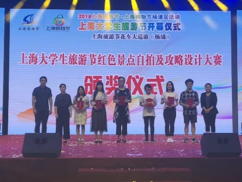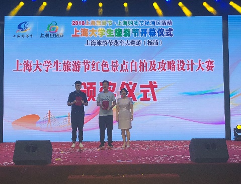 由上海市旅游局、杨浦区人民政府主办的2018上海大学生旅游节红色自拍及攻略设计大赛于9月21日晚在黄兴公园中央广场举行颁奖典礼和展映仪式。我校上海纪录片学院徐轲、席章瑾、廖明明、李嘉诚、吕佳钿、王雯等同学参加并获奖。