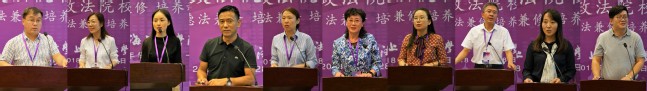 专题发言环节由上海政法学院学生工作部副部长徐丽红主持。来自10所院校参会代表围绕年会“立德树人,德法兼修,培养新时代法治人才”主题作了精彩发言。他们立足政法院校特色,凸出学科、条线内容融合,以全员全方位全过程育人理念为指导,分别从资助育人、学风建设、心理育人、课程思政、学工队伍建设、党建工作、学生日常管理与服务、就业创业服务等方面进行了深入的交流与分享,为中国特色社会主义新时代政法院校大学生思想政治教育工作提供了新思路、新方法和新经验。(胡飞宇撰稿 晏晓东摄影)
