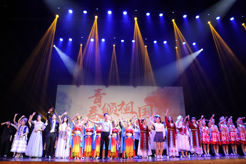 退伍军人代表和校主持人队共同朗诵的《我骄傲,我是中国人》,铿锵有力、富有感情地表达了对伟大祖国繁荣昌盛的祝愿;少数民族预科班、舞蹈队的民族舞《舞疆》,带领现场观众领略了各民族风情;晚会在法律学院王绍佳老师与社会管理学院新生班联唱的《国家》中落下帷幕。