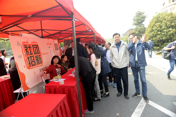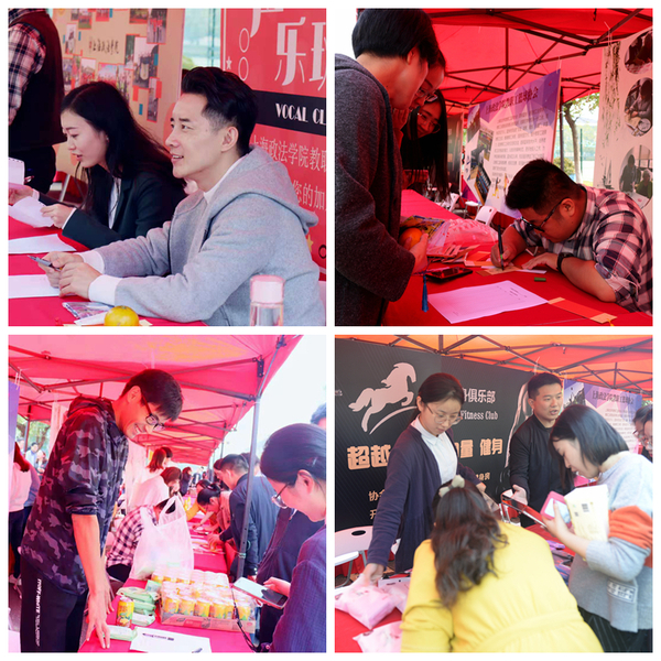 从十一点一刻起,各社团负责人陆续进入指定位置,为即将进行的招新做准备。参与这次活动的足球社、茶道社、书画社、徒步协会等近二十个社团,面向我校教职工招新。为吸引更多的教师加入到自己的社团中来,各社团除了通过海报的宣传方式,展示自己的社团文化和活动,还现场发放了很多独具特色的小礼物。