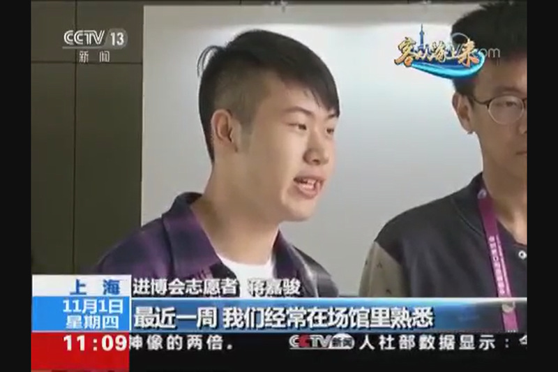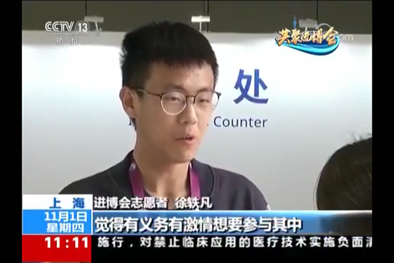 11月1日,央视《新闻直播间》栏目对首届中国国际博览会青年志愿者进行了专题报道。我校志愿者刘念一诺、陈知闲出镜,蒋嘉骏、徐轶凡同学接受了采访。