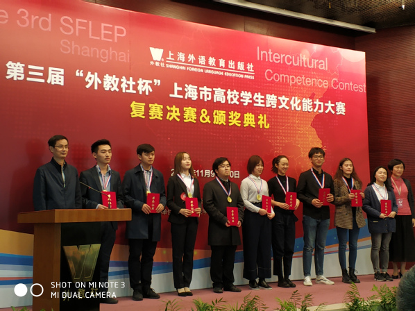 11月10日,第三届“外教社杯”上海市高校学生跨文化能力大赛决赛在上海外国语大学顺利举行。上海政法学院外国语学院2015级英语专业吴泽宏、石亦琳同学,国际事务与公共管理学院2017级国际政治专业赵玙璠同学代表我校组队参加比赛,通过激烈角逐,我校代表队表现出色,最终与复旦大学、华东师范大学的参赛选手共同斩获本次大赛一等奖。外国语学院杨军红老师获优秀指导教师奖。