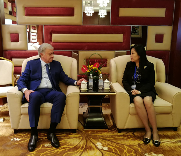 阿利莫夫、谢小用在会前会见了刘晓红。阿利莫夫对上海政法学院协办本次会议表示了衷心的感谢,对刘晓红一行出席会议表示热烈欢迎。阿利莫夫高度赞赏我校纪录片学院为上海合作组织秘书处制作的纪录片,并表示该纪录片作为宣传和展现上海合作组织精神风貌的最佳名片,将于年底在联合国进行播放。此外,双方还就今后如何开展和举办高水平的学术研讨会议、人才培养计划、以及举办各类活动进行了热烈而友好的交流并达成了共识。
