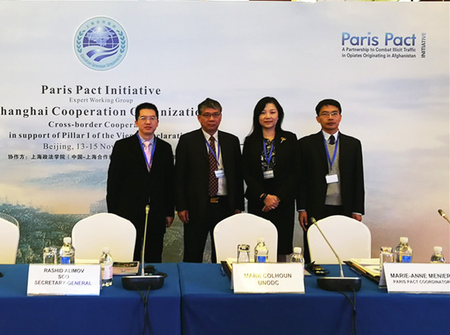11月13日上午,由联合国主办、上海合作组织秘书处承办、上海政法学院协办的“巴黎进程”地区合作专家组会议在北京顺利举行。上海合作组织秘书长阿利莫夫、副秘书长谢小用,中国国家禁毒委员会副主任、公安部反恐专员刘跃进出席开幕式并致辞。来自全球18个国家和10个国际组织的70名高级代表出席会议。刘晓红校长率我校专家和相关部门负责人出席了本次会议。