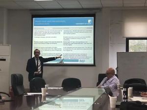 驻访期间,Alastair Mullis、Roger Halson为我校教师和学生分别开展了讲座。11月12日下午,Alastair Mullis、Roger Halson同我校教师围绕“如何创作并在国际上出版研究项目”进行了学术交流研讨。两位教授针对文献阅读、基本写作规则、法律研究的不同形式比较、理论创新性、研究意义、创作严谨性等方面举例说明并结合自身经验为我校老师提供了切实建议,同时就学术研究方面的具体问题与在场教师进行了深入交流。