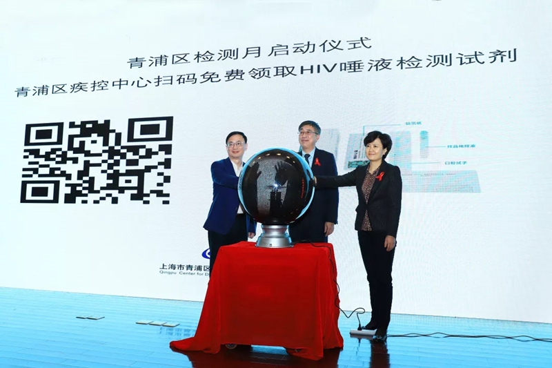 王凌宇、马彩云、吴强共同宣布青浦区艾滋病检测月启动。