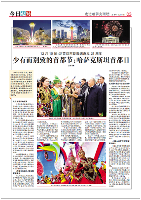 正值哈萨克斯坦新首都阿斯塔纳设立21周年,12月12日,我校俄语专业大三学生龙瑾瑜在吉尔吉斯斯坦《丝路新观察》第154期与哈萨克斯坦《今日丝路》第43期上发表了题为《少有而别致的首都节:哈萨克斯坦首都日》的文章。