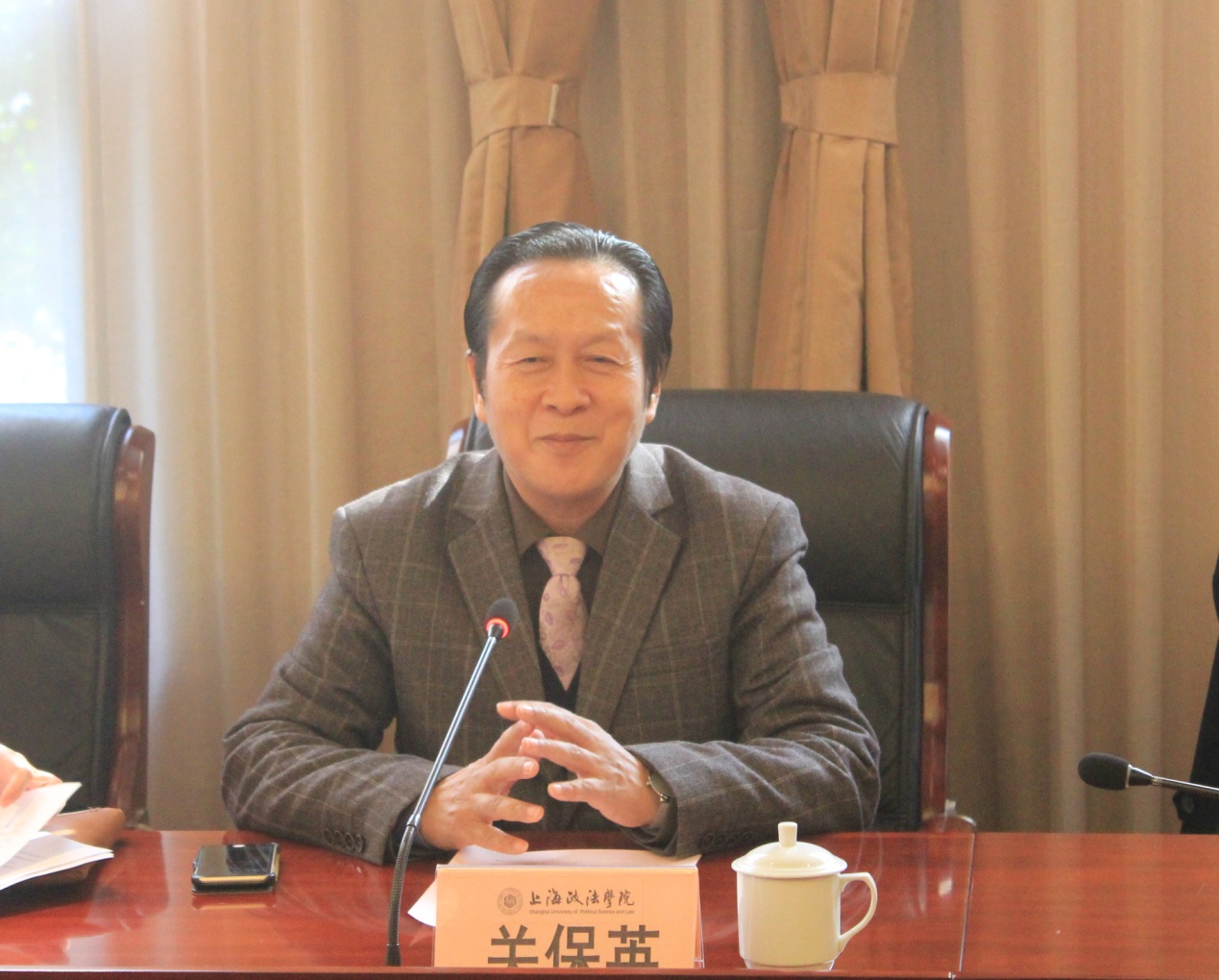 会上,观看了青浦区司法局宪法宣传片。关保英致欢迎辞,介绍了上海政法学院的办学背景、上合培训基地创建、办学优势和专业特色等成果,指出我校法律学院与青浦区司法局、上实/上药(集团)、社会研究机构开展教、学、研全面合作,是促进各方开展司法实务、教育培训、培养人才、学术研究与教学实践的深度融合,预祝合作有更多成果。四家单位领导分别作了发言,一致表示希望通过不断扩大合作项目,实现双向服务、资源共享,合作共赢。