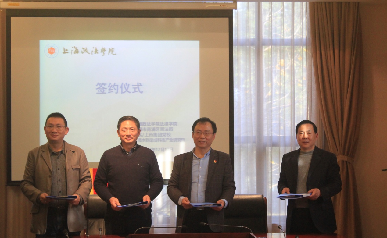 为进一步推进区域化党建工作,促进基层党建与教学科研相融合,12月17日下午,法律学院与青浦区司法局、上实/上药(集团)党校、上海水到渠成智库在综合研究中心101会议室举行了“党建引领,法治联动”区域化党建共同体签约暨大学生实践教学基地揭牌仪式。