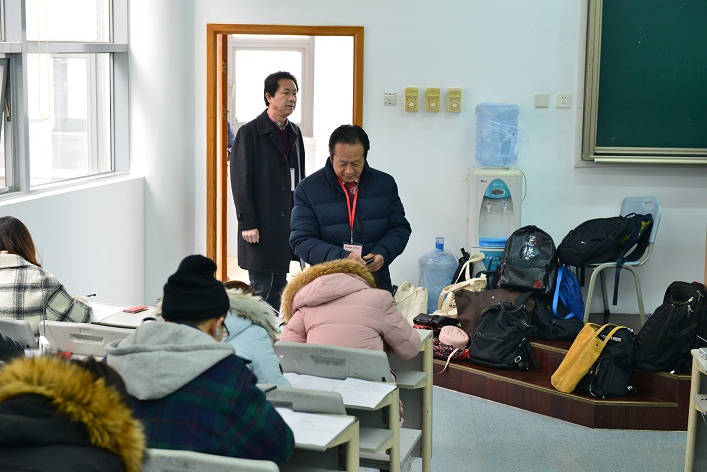 我校2018-2019学年秋季学期期末考试于1月2-9日进行。1月2-4日,党委书记夏小和、党委副书记吴强、副校长关保英、副校长姚建龙带领教学质量督查与评估办公室、教务处、各二级学院(部)负责人与教学督导组成的期末考试工作巡考小组,对我校期末考试情况进行了巡视。
