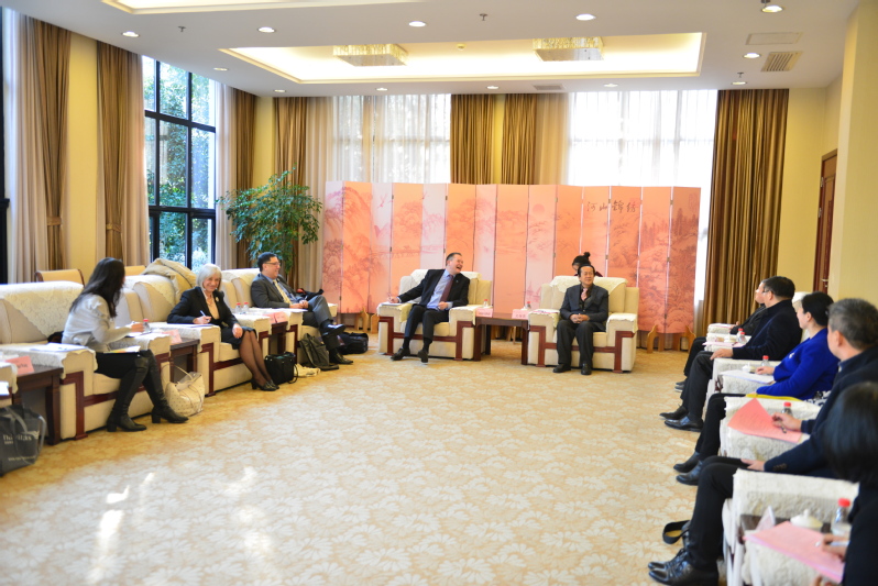 1月17日下午,英国朴次茅斯大学校长Graham Galbraith、副校长Chris Chang、商法学院执行院长Gioia Pescetto、中国代表处主任Wendy和市场经理Rachel一行五人访问我校,我校副校长关保英会见了来访嘉宾并出席两校的签约仪式。国际交流处处长、国际交流学院院长欧阳美和,经济管理学院院长刘志强,外国语学院总支书记姚善英,教务处副处长陈风光,国际法学院党总支副书记张顺芳,国际交流处国际项目主管王瑶等陪同会见。
