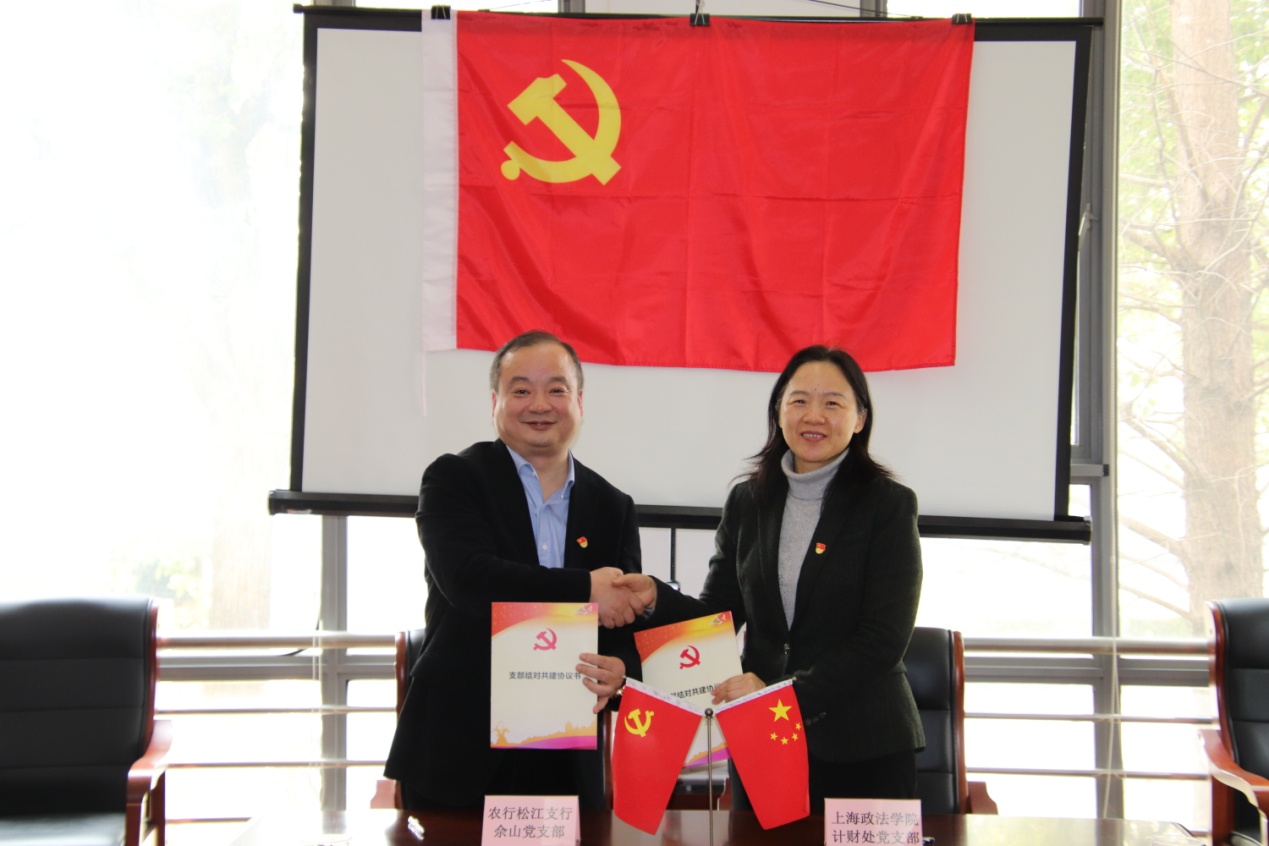 为了进一步加强新形势下基层党组织建设,强化党组织之间的交流合作,3月11日下午,上海政法学院计财处党支部与中国农业银行松江支行佘山党支部举行了结对共建签约仪式。上海政法学院副校长胡继灵,计财处副处长叶玮、陶洁,农行松江支行党委书记陆晓云以及共建双方的党支部书记和委员、组织部门代表等出席活动。