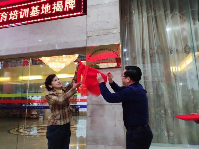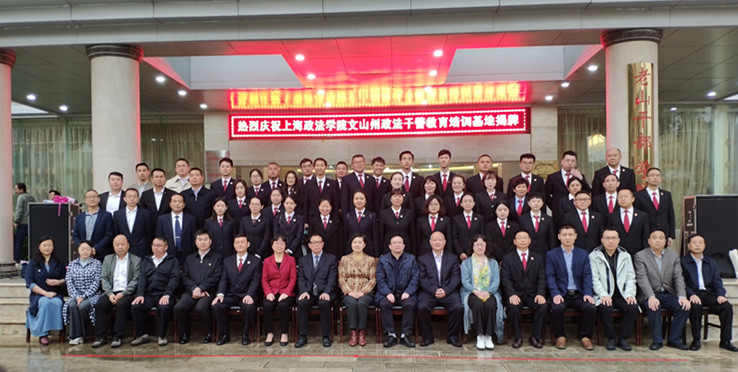 3月19日上午,上海政法学院文山州政法干警教育培训基地揭牌暨图书捐赠仪式在文山州委党校举行。云南省扶贫办党组成员、副主任,文山州委常委、副州长李新,文山州副州长玉荣出席。夏小和与李新共同为“上海政法学院文山州政法干警教育培训基地”揭牌。