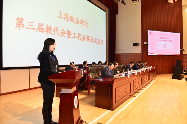 3月26日,上海政法学院第三届教代会暨工代会第五次会议在中国-上合基地召开。全体校领导、教代表出席会议。党委副书记、副校长、工会主席刘刚主持会议。