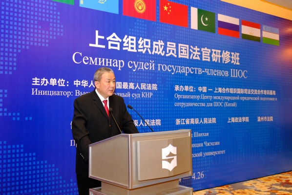 4月26日,上合组织成员国法官研修班结业典礼在温州举行,最高人民法院大法官胡云腾出席结业典礼并致辞,浙江省高级人民法院院长、大法官李占国,上海政法学院校长刘晓红,温州市中级人民法院院长徐亚农等参加典礼,巴基斯坦最高法院大法官马希尔·阿拉姆、乌兹别克斯坦最高法院法官卡迪罗夫·卢克蒙代表外方学员致辞,典礼由最高人民法院国际合作局副巡视员于小羽主持。