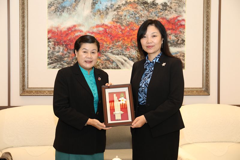 威拉冯·潘塔冯向刘晓红赠送了具有老挝特色的纪念品。刘晓红表示感谢,并代表我校赠送了有中国特色的纪念品。