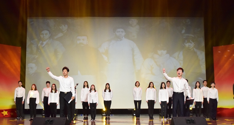 女声独唱《天路》与优秀团支部标兵单位带来的《聆听青年》热烈又激昂,富有感情地表达了对繁荣祖国的赞颂,展现了青春爱国的力量。