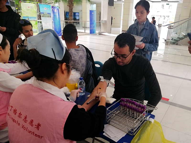 俞赞红、王琼一行在我校红十字会工作负责人的陪同下,视察了干细胞采集工作,对我校红十字会的宣传、组织工作予以高度肯定,对同学们热情捋袖、温情奉献的志愿者精神予以高度赞扬。