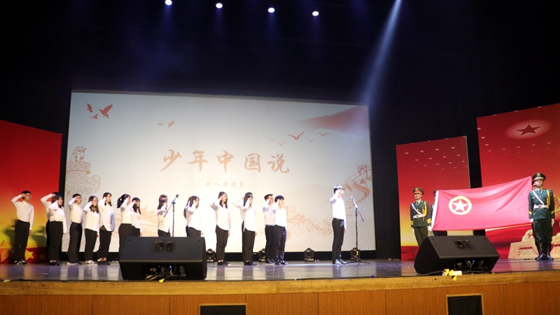 本次诗会分为三个篇章。在“青春力量”部分,我校2018年新入团团员进行了集体宣誓,用昂扬澎湃的《少年中国说》展现青春向上的力量。