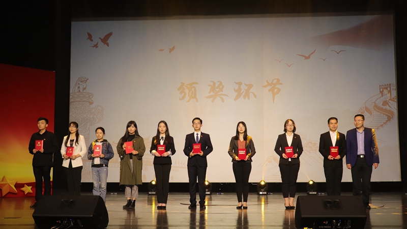 党委副书记、校长刘晓红,党委副书记、纪委书记潘牧天为我校首届五四青年奖章获得者、五四红旗团委(含创建单位)、优秀团支部标兵单位颁奖。