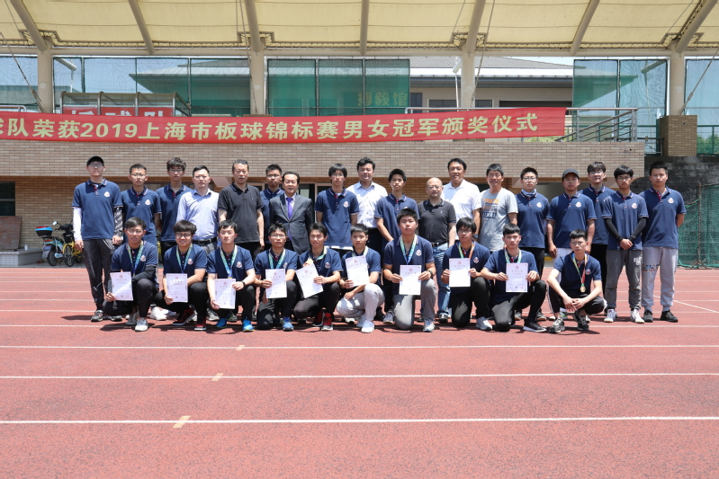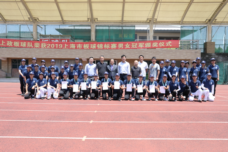 刘刚、关保英为荣获2019年上海市大学生板球锦标赛冠军的男女队员们颁发奖牌、奖状并合影留念。