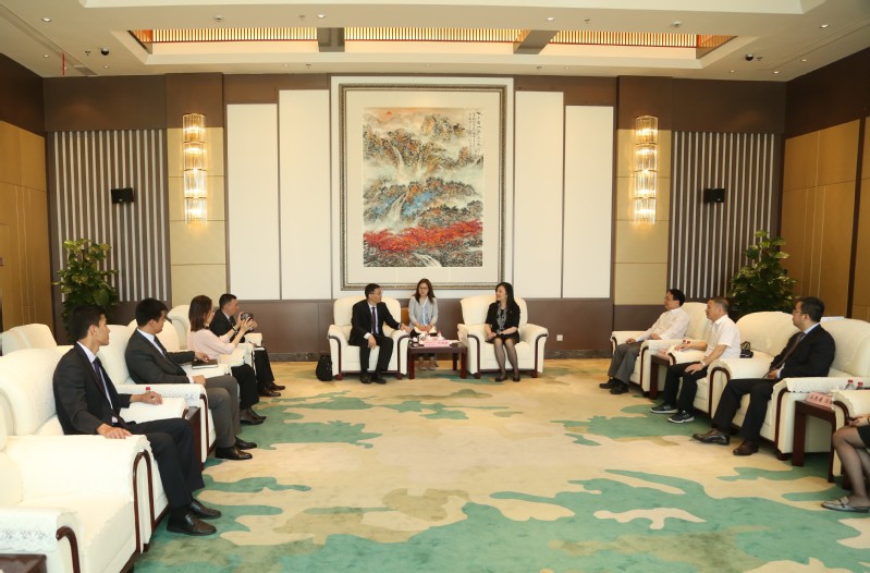 刘晓红与堪亚佐夫互赠礼物并合影留念。中国-上合基地办合作部主任姜思源、副主任王雅鹃参加上述活动(甘中飏撰稿 丁杰、赵宝科摄影)