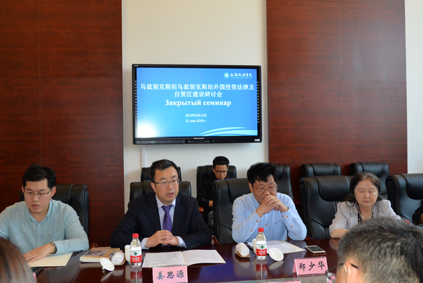 5月21日下午,乌兹别克斯坦外国投资法律及自贸区建设研讨会在中国-上合基地顺利召开,乌兹别克斯坦司法部副部长、塔什干国立法律大学校长堪亚佐夫,塔什干国立法律大学刑事诉讼及犯罪侦查教研室主任图赫塔舍娃·乌米达等4名乌方人员出席会议。上海财经大学法学院教授、最高人民法院自贸区司法研究基地主任郑少华,华东政法大学教授、博导、中国财税法学会副会长、上海市财税法学会会长陈少英等10名中方人员出席会议,中国-上合组织法律服务委员会交流合作基地秘书长、上合组织法律服务委员会中方筹备办执行秘书长姜思源与上海政法学院经济法学院副教授孙放主持讲座。