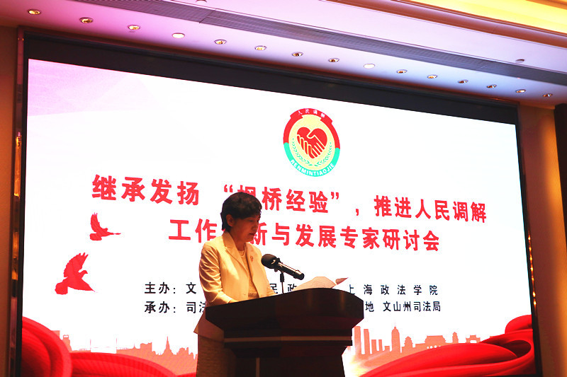 5月29日上午,上海政法学院与文山州人民政府共同举办的“继承发扬‘枫桥经验’,推动人民调解工作创新与发展专家研讨会”在文山州举行。文山州副州长李新和上海政法学院校长刘晓红出席并致辞。我校发规处处长石其宝、教务处处长袁胜育,文山州政法委、法院、检察院、司法局、各基层司法行政部门的代表参加。法律学院(调解学院)院长、司法部调解理论研究与人才培训基地执行主任兼秘书长侯怀霞,调解基地副主任张进德、副主任张西恒、秘书孙哲作主题发言。文山州政府办公室副主任刘嘉俊主持会议。