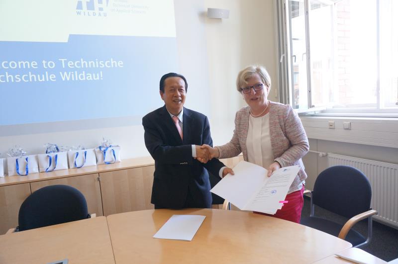 Ulrike Tippe热烈欢迎代表团的到来,介绍了德国维尔道应用技术大学的基本情况,表达了深入加强两校合作交流的意愿。关保英介绍了我校的基本情况,并表达了深入开展校际合作交流的意愿与构想。两校签署了合作框架协议。