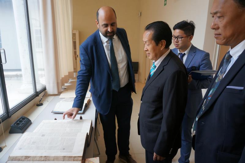 代表团参观了该校的校舍、图书馆等,包括该校馆藏欧洲最古老的法典之一。双方就师生互访、高级学者驻访和罗马法专业人才培养进行了深入探讨,并一致同意加强专业领域的人才交流与合作。