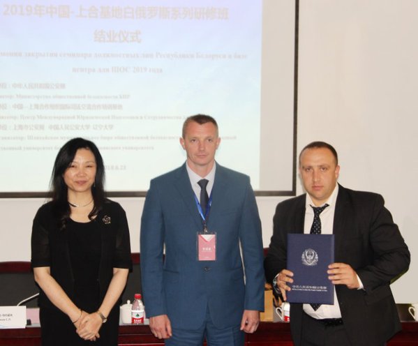 6月23日下午,2019年中国-上合基地白俄罗斯系列研修班结业仪式在中国-上合基地综合楼106会议室召开,上海政法学院校长、中国-上合基地办公室主任刘晓红、马克思主义学院副院长徐世甫、语言文化学院党总支副书记周欣等出席,活动由中国-上合基地办公室培训部主任陈校主持。