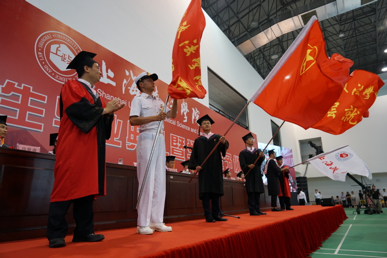 副校长关保英、副校长姚建龙向优秀毕业生、新疆专招生、西部计划志愿者、退伍军人毕业生代表授旗。