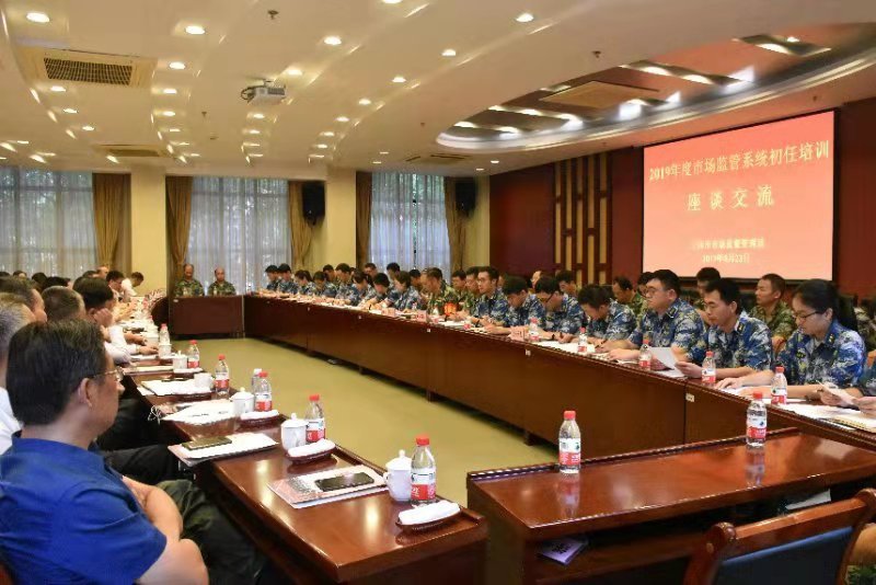 军训汇报活动后,阎祖强与大队长、中队长和学员代表座谈交流。他充分肯定了本次培训成果,指出市场监管系统新录用公务员的准军事化、封闭式初任培训已经成为全市公务员培训的一个品牌,在培训中,各位学员学习勤奋、斗志昂扬、精神饱满,展现了新时代青年人的风采,为市场监管系统注入了新鲜的血液,并勉励大家将培训所学应用到市场监管工作中去,在执法实践中敢于担当、善于作为,为市场监管事业增光添彩。阎祖强对学员今后的工作提出了具体要求和希望,并对我校的大力支持和提供的优质服务表示感谢。