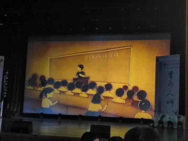 现场由沙画展示了上政教师教书育人的点点滴滴。