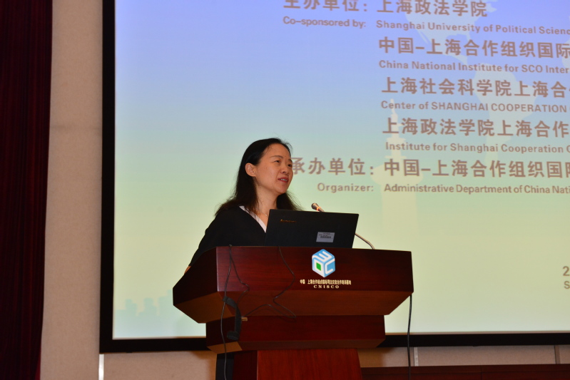 上海政法学院副校长胡继灵致欢迎辞,胡继灵对国内外嘉宾的到来表示热烈欢迎,介绍了中国-上合基地的核心功能以及建立与发展的过程,希望能够通过此次会议,让更多的学者了解中国-上合基地,让中国-上合基地这一平台发挥更大的作用,更好地服务国家战略和上海市经济和社会发展,更好地服务上海合作组织,更好地推进“一带一路”建设。
