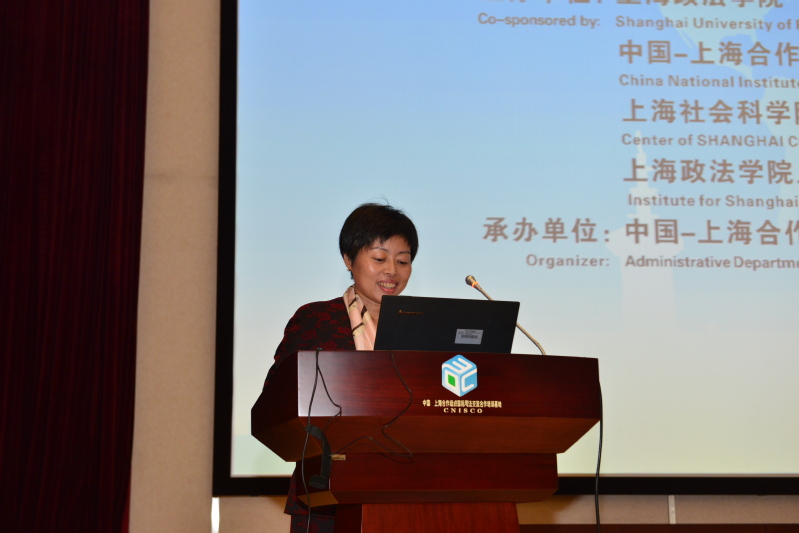 上海政法学院副校长胡继灵致欢迎辞,胡继灵对国内外嘉宾的到来表示热烈欢迎,介绍了中国-上合基地的核心功能以及建立与发展的过程,希望能够通过此次会议,让更多的学者了解中国-上合基地,让中国-上合基地这一平台发挥更大的作用,更好地服务国家战略和上海市经济和社会发展,更好地服务上海合作组织,更好地推进“一带一路”建设。